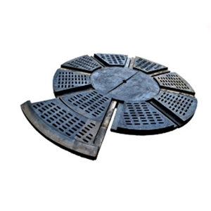 溢流球磨機(jī)端襯板設(shè)計(jì)為兩段分割的設(shè)計(jì)結(jié)構(gòu)。受球磨機(jī)材料高度的影響,球磨機(jī)端襯板的強(qiáng)磨損帶一般位于內(nèi)圈端襯板的中下部和外圈端襯板。內(nèi)圈端襯板的上部基本上沒有磨損。兩段分割的設(shè)計(jì)結(jié)構(gòu)迫使內(nèi)圈端襯板在下部磨損后報(bào)廢更換,導(dǎo)致襯板使用成本增加。當(dāng)球磨機(jī)端襯板采用三段分割的設(shè)計(jì)結(jié)構(gòu)時(shí),只需根據(jù)需要更換內(nèi)圈襯板的中下部和外圈端襯板襯板的上部可以長時(shí)間使用,無需更換。
